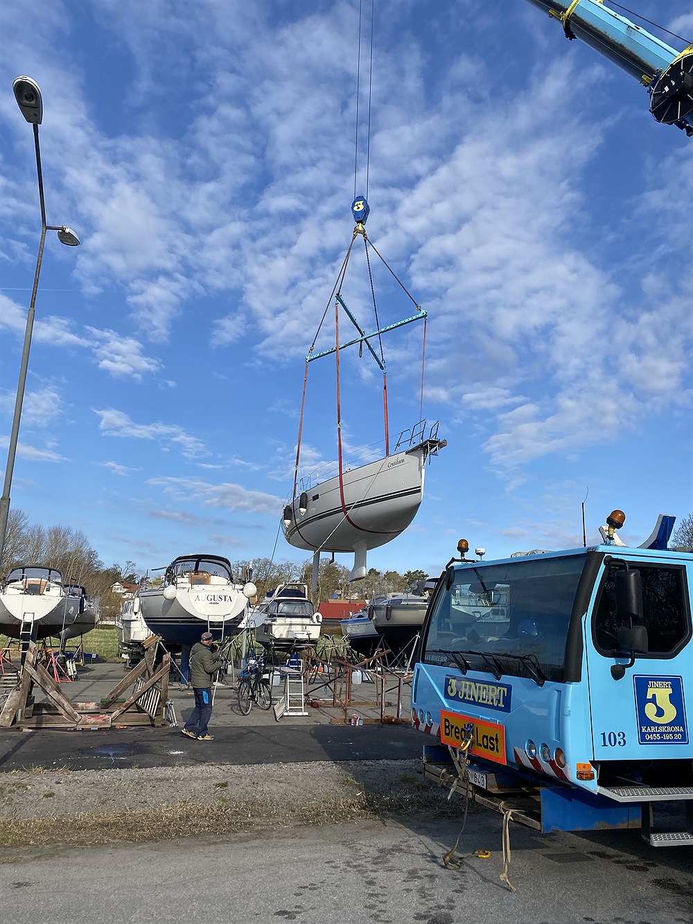 Lördagen 25 april med start kl 0700 är det Sjösättning med kran vid Åslätten.
